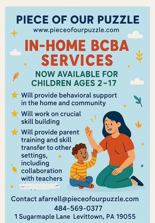 For those in need of preschool services, we offer a private 4 STAR preschool in Levittown, PA. At The Puzzle Academy, we work very closely with the children to establish positive, therapuetic and educational relationships. Our school accepts children ages 3 through 5 years old, both typically developing and special needs.
