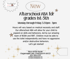 Applied Behavior Analysis (ABA) begins with an assessment administered by a trained therapist to determine what skills a child already has, as well as what skills a child shows deficits in. Programs are created to address the deficits and build on acquired knowledge using incidental teaching, discrete trial training, & positive reinforcement. There programs work on receptive & expressive language, social skills, and behaviors. This is also offered afterschool for grades 1st through 5th (see below).